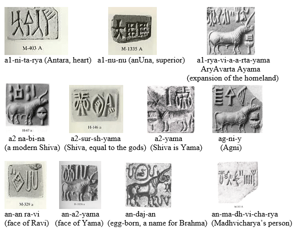 But you’re probably wondering whether any of this has anything to do with you, personally. It does. If you have a common Indo-Iranian (Sanskrit, Prakrit) name, you may find that it is on an Indus seal, encoded in Indus script. Here are some examples:
