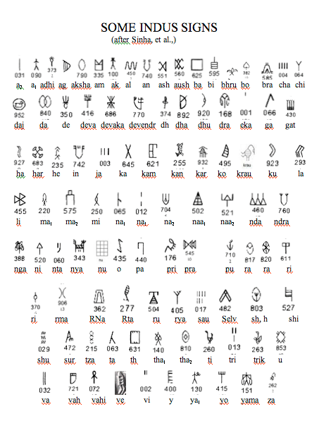 Time passed. After about three weeks of eyestrain and butt pain from sitting for many hours gazing at the screen, I had the majority of the more common Indus signs assigned sound values. The sign list looked something like this: