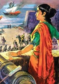 In true family tradition, she had continued defying the Portuguese and trading directly with the Middle East. When the Portuguese captured a rich ship of hers returning from Mecca, she planned a secret attack. On a dark night, her fishermen soldiers, the Mogaveeras and Moplahs, got into boats, sneaked in amongst the Portuguese ships, and used thousands of agnivaans (flaming arrows) and coconut torches to set the ships on fire. The Portuguese navy had to retreat with heavy losses.