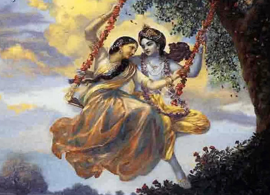 In fact, unmarried girls who have periods around this time were worshipped as her avatar! Playing the swing also became an important part of the festival during this time. It is believed that often Lord Vishnu, in the avatar of Krishna, to ease the pain of the periods would put up a flower decked swing on a tree and play cards with Bhudevi sitting on the swing as the wind rocked it gently. Today every household puts a swing on the tree, decked with flowers, for their girls to enjoy the same!