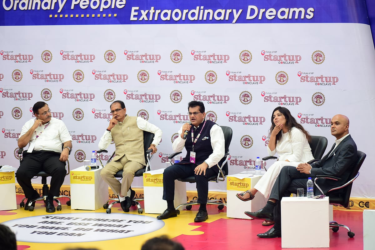 The second session started with a talk by NITI Aayog CEO Amitabh Kant who announced NITI Aayog’s plan to set up 500 new incubation centres in Madhya Pradesh. He emphasised that to get 10 per cent gross domestic product growth, the contribution of start-ups and young entrepreneurs is of utmost importance. He appreciated the fact that MP became the first state to establish an entrepreneurship development centre. He also praised the state for having their maximum number of start-ups involved in crucial sectors of education and agriculture.