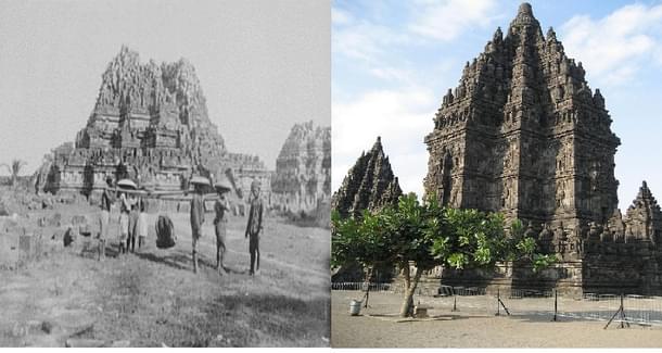 The reconstruction of these temples took decades of painstaking work. The pictures of Prambanan from a century ago and now are shown below.