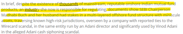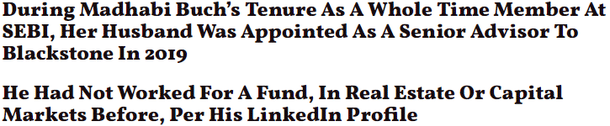 I may have misunderstood them, but if in fact they are insinuating that Blackstone hired him to get an “in” with the SEBI chair, then they should be addressing their queries to Blackstone or then providing proof of a direct quid pro quo. Additionally, it is worth mentioning that Daval was hired in 2019 (per HR’s article), while MPB became the Sebi chair only in March 2022.