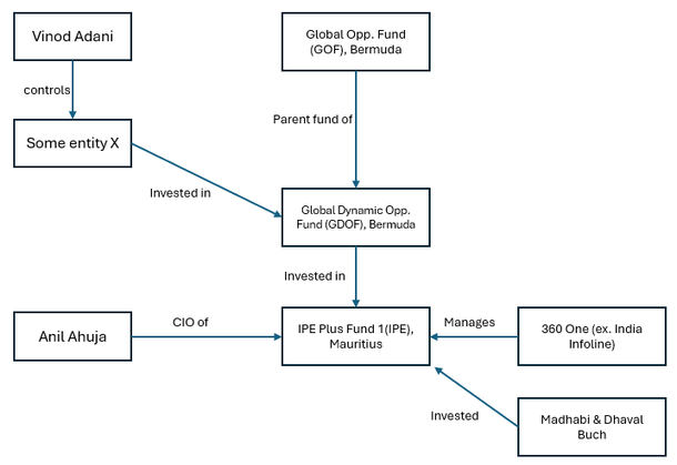 1. Anil Ahuja is linked to the Adani Group, and he managed IPE; Adani may have invested in IPE.