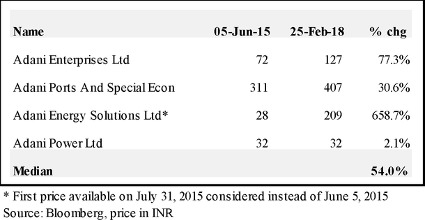 As one can see, a cross-section of the major Adani Group companies returned a median 54 per cent during this period, a far cry from the flat performance of IPE that MPB/DB had invested in. As such, it is unlikely, in my opinion, that this fund invested only in or majorly in Adani shares.