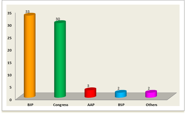 | Congress | 40.31% | 43 | 34%(-6.31) | 30(-13) |