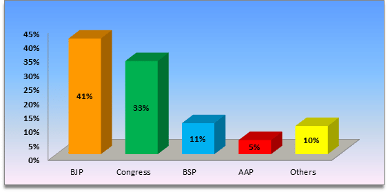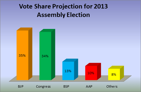 *BJP largely retaining its core vote but the party vote share is likely to decline to 34% from 35.14%.The party is gaining 10 seats compared to 2008.