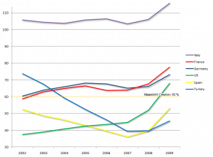 If you are wondering where you heard this before, yes Turkey in 2002, was pretty much like India in 1991, and Erdogan-Babacan duo, was the Turkish version of the Narasimha Rao-Manmohan Singh tango. The average GDP growth has been 7.3% from the time Erdogan took over in 2003 to date. The debt amount of 23.5 billion USD which Erdogan had inherited, has been reduced down to 6.1 billion USD, and Turkey expects to clear all its debts by 2013. The public debt as a % of the annual GDP fell from 74% in 2002 to just around 39% in 2009, as shown by the above picture. Unemployment fell to around 9.7%, though during the 2008 global economic crisis in 2008, Turkey was not spared from the fall out. And from around 26.5 billion USD in reserves, it is at a much more healthier 92.2 billion USD in 2011.