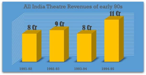 4.As per trade analysts of that era, weekly all India theatre revenues jumped by a whopping 40% in 1994-95 to 11 Cr rupees from 8 Cr rupees in 1993-94, courtesy the families revisiting theatres due to HAHK