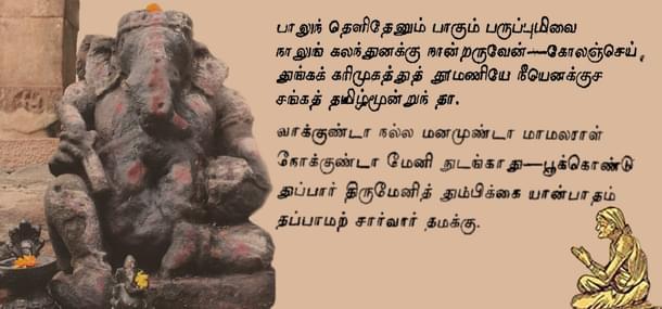 He needs no elaborate temples. He needs no roof. Just being there, He converts the space into a sacred shrine. The deep love and connection with Ganesha in Tamil Nadu is closely reflected in the state's sacred literary tradition.