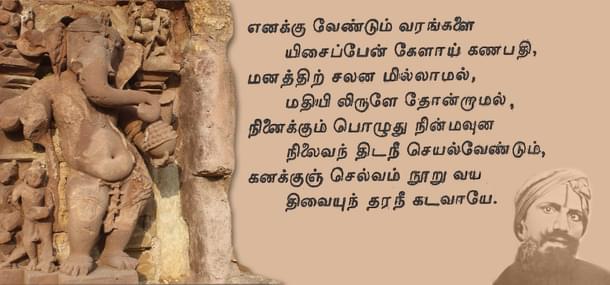 In modern times, the great Tamil poet Subramanya Bharati wrote Vinayagar Nanmani Malai. The spiritual grandeur of this is second only to that of the Vinayagar Agaval.