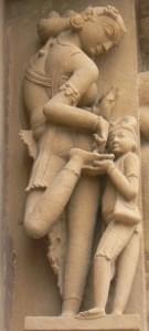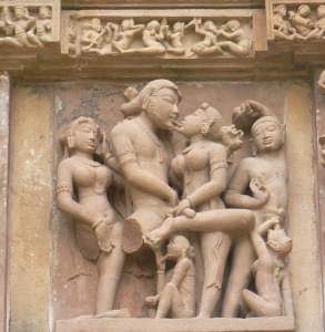 However, such truth is usually politely ignored in public and it would have been scandalous to portray it in stone on a temple wall anywhere else. Khajuraho, however, leads in its boldness. However, as scholar Devangana Desai notes, despite all its forthrightness in the matters of the grihasta, one does not see a woman with multiple partners. Nor does one see partners of the same gender together.