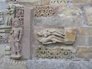 The name Khajuraho is thought to come from two golden date palms at the gate of the site that were missing at the time of the rediscovery of the site by English surveyor TS Burt in 1830s. Though famous for their erotic content, in actuality, such sculptures are quite few and no more than 15% of the total work.