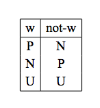 A property with an empty domain was taken to be fictitious or unreal and non-negatable. Negation was considered a valid operation only on real properties. This could be considered to generate a three-valued table. If P, N and U represent “positive”, “negative” and “unnegatable”, then we have the truth table [12]: