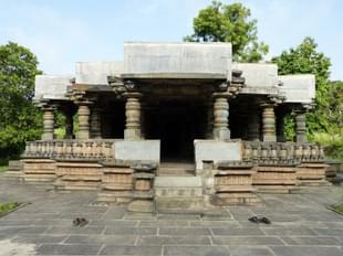 The entire temple is exceptionally symmetric in its design, with an unusually elongated structure leading to the main sanctum that hosts the Shiva Linga of Tarakeshwara. The length of the temple is due to the two mukha mantapas one behind the other that lead to the main sanctum, supported by ornate pillars that are both beautiful and large in number. Stories of Ramayana adorn the friezes of the outer walls along with the usual large keertimukhas seen commonly among the temples of the later Chalukya era. The temple had received funding from the Kadambas, the Kalyani Chalukyas and the Hoysalas among others.