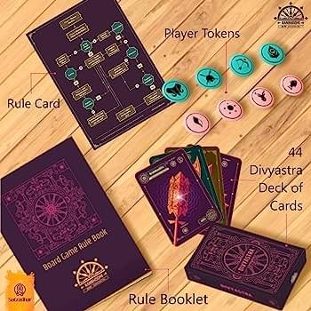 The movement is controlled by the throw of a dice while all the players get some divyastras in the form of cards to help them navigate the dangerous battlefield and avoid pitfalls on the way.