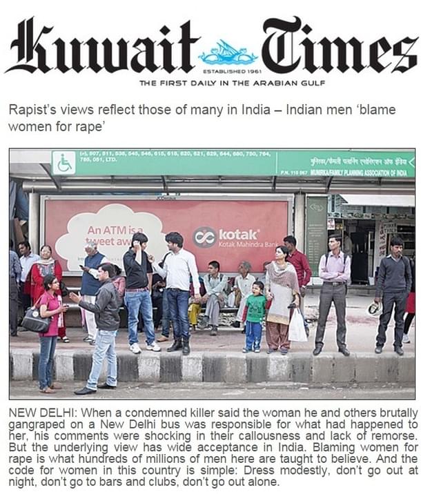 A headline in The Wall Street Journal’s blog reads. “Delhi Rape Documentary ‘A Mirror’ on Indian Society, Says Victim’s Father”.