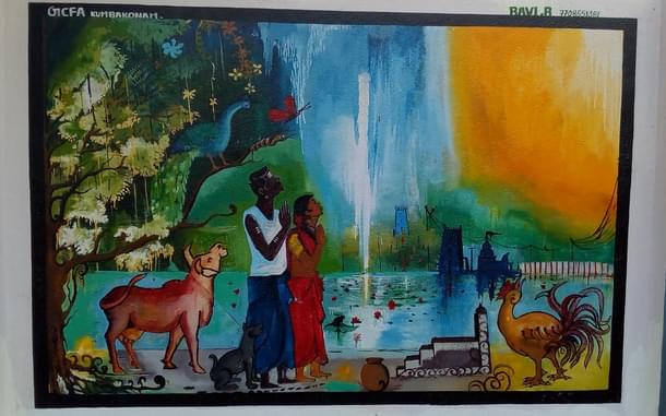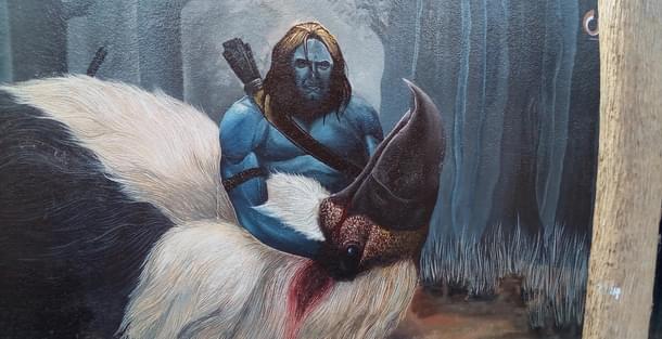 The result is an astonishing art gallery of various folk and calendar art paintings from across India. Not all are of the same quality, though. Nevertheless, they give us a good sense of what animates the artistic Indian mind. There seems to exist, despite all the linguistic divides and connecting themes, a certain common thread through art. Many of the artists have drawn scenes from their local legends; yet, one can feel at home with them.