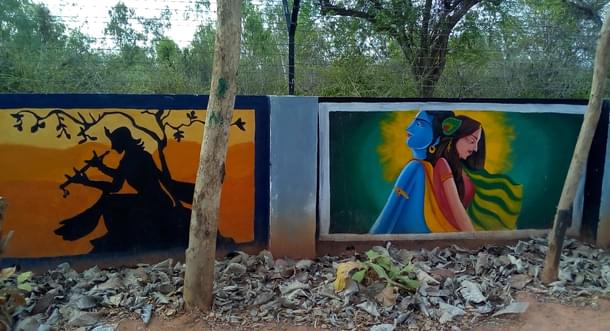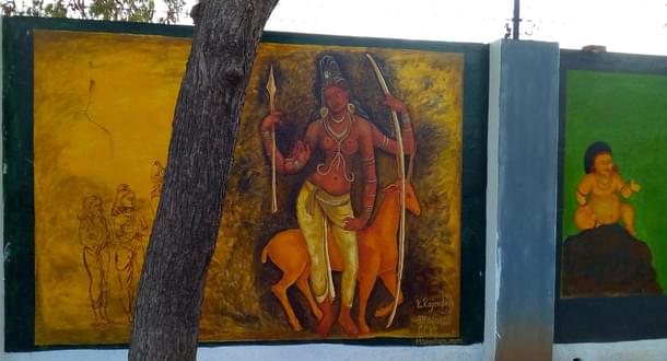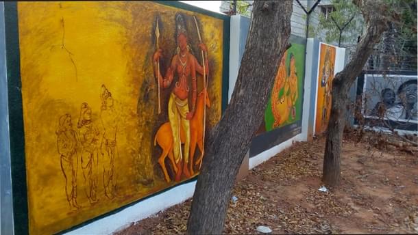 The centre also conducts workshops in different schools of painting from various states – mainly their folk traditions. The folk artists, painters of calendar art as well as students of painting have been asked to paint every panel of the campus wall.