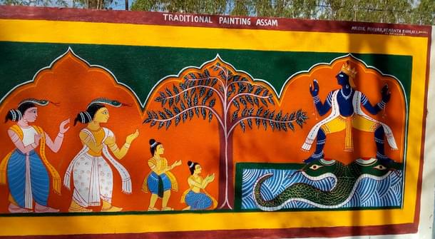 This folk painting from Assam shows Krishna dancing on Kaliya. When it comes to depicting love and romance across styles and languages, the artists choose Krishna – naturally.