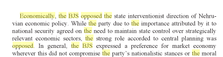 Sebastian Schwecke in his book “New Cultural Identitarian Political Movements in Developing Societies: The Bharatiya Janata Party” writes on Jan Sangh’s stated preference for Market Economy