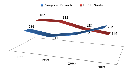 The answer to these questions lie in the historic context of the 2004 polls. The background on which these polls were held gives us that contextual reference; BJP & NDA were seen as almost indispensable because of their no-nonsense governance model and the ability to not only attract allies but also retain them and Congress was seen as a directionless party with almost no significant allies and no alternative policies, furthermore, Atal Bihari Vajpayee was perceived to be the most popular Indian leader since Indira Gandhi, whereas Sonia Gandhi was seen as almost a liability for the Congress party mostly because of her foreign origins (remember how Vajpayee and Advani were informally quoted many a times to having said something like “as long as that woman (Sonia) is the head of that party, there is nothing to fear about Congress”). Had the 2004 elections gone according to popular expectations and had the Congress party lost once again, then most certainly the party would have disintegrated and their leader Sonia Gandhi’s political carrier would have come to a premature end. For the first time in independent India’s history, Congress party was out of power for 8 years and its tally in the Lok Sabha had fallen well below 150 seats. It is from this nadir that Sonia Gandhi and the Congress party emerged like a phoenix from the ashes to defeat a party and a leader whose popularity was far greater than her own.