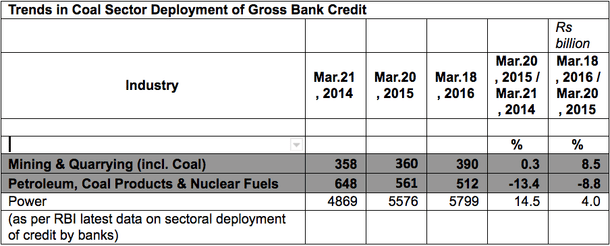 Trends in Coal Sector Deployment of Gross Bank Credit