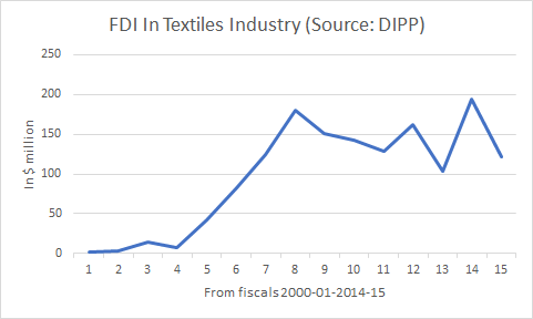 Between 2001 and 2015, India’s textile and apparel exports nearly quadrupled from $10.7 billion to $41 billion. It actually doubled to $20 billion in 2005 from 2001 and then took another 10 years to touch $40 billion.