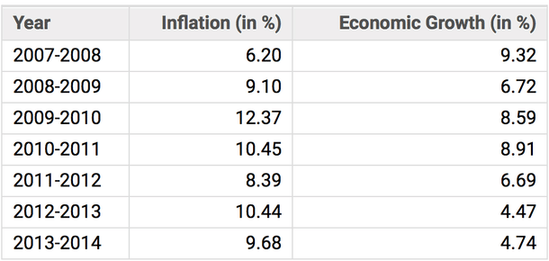 In 2007-2008, inflation was at 6.2 percent and the economic growth came in at 9.32 percent. In the aftermath of the financial crisis that started in 2008-2009, the Union Government increased its expenditure in the hope of ensuring that the economic growth did not collapse.