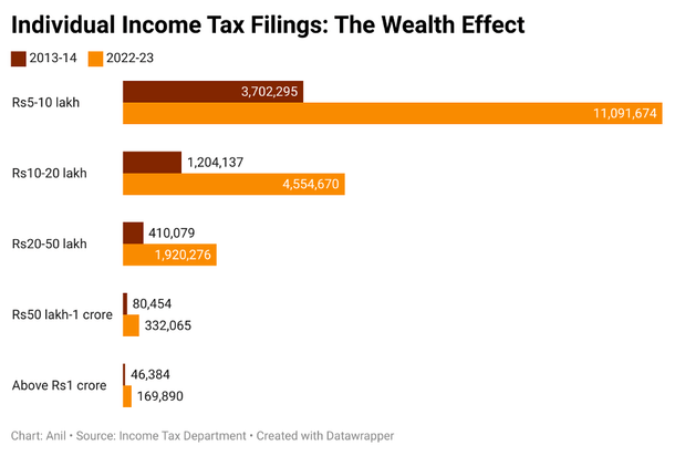 Padmanabhan's study of ITR data suggests a widening tax base, across various income brackets.