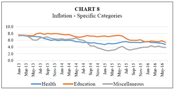 Third, Rajan refers to falling inflation in non-food, non-fuel, non-traded products to prove the efficacy of his rate strategy. Inflation in the health and education sectors too came down – two sectors that had little to do with fuel price changes (see chart)