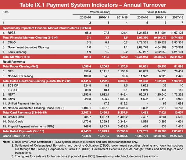 First, a less-cash economy is desirable, but it needs to be preceded by strong cyber-security and privacy laws, and the pressure to go digital should be attempted geographically, city by city, district by district. It is only when the geographical ecosystem in which rich, middle class and poor people transact digitally with one another that we can move towards a less-cash economy. Unless almost everybody feels he or she can transact with less cash, the total demand for cash will not fall significantly. It cannot be done purely through the abolition of fees for card or wallet payments. In any case, non-cash modes of retail payments are growing robustly. Between 2015-16, 2016-17 (the demonetisation year) and 2017-18, retail electronic payments rose 45 per cent in one year, and again by the same proportion in the last financial year. Retail electronic payments include payments by NEFT, IMPS, wallets, UPI payments, electronic bill and EMI debits, and credit and debit cards (see table IX.1 from the RBI annual report).