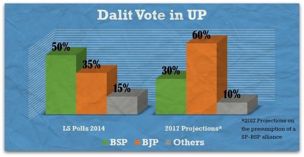 Mayawati’s great ability is attributed to her vote-bank which is easily transferable to any coalition partner, but it can potentially fail if an alliance with SP is formulated as a vast majority of Dalits suffer the everyday strong arm tactics of Yadavs under the SP regime. If anything, such an alliance will only hasten the process of a near total shift of Dalit votes from BSP to BJP.