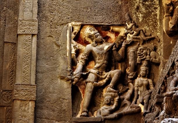 There are mural paintings very similar to Ajanta. However, most of them are lost. Local traditions say that Mughal ruler Aurangazeb ordered the destruction of the temple. One could see the tell-tale signs of destruction. Yet, whoever tried to destroy it could not accomplish the task. The temple still stands proud.
