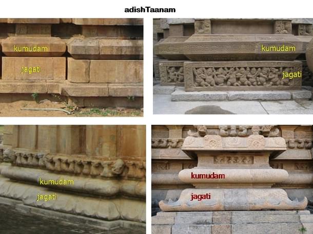 The adishtaana of Dravida temples have two major parts — the kumudam and the jagati.