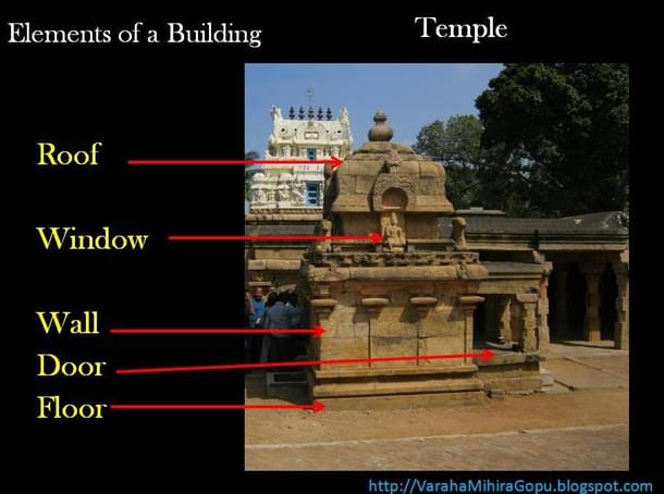 A temple is just another building. It has all the structural elements of a building — floor, walls, pillars, windows, sunshades, roof.