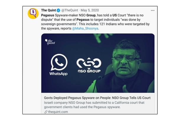 The meta-narrative, in fact, is far more interesting than the narrative. Just look at this headline story in The Guardian. Even though several other countries were alleged to have used Pegasus, that was sleight-of-hand and intended to obfuscate: the clear target is Prime Minster Narendra Modi.
