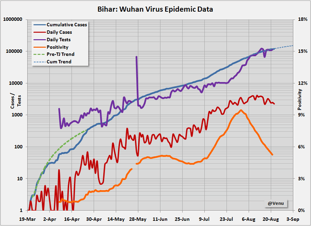 Your writer’s forecast, based on current data, is that even though fresh clusters would emerge in Bihar (it is inevitable), there is a high probability that the daily case count in Bihar could be down to near 1,000 by the middle of September.