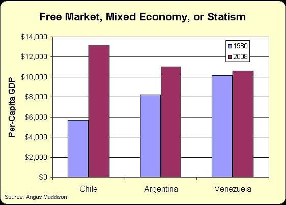 Yes. More than five years ago, I compared three decades of data to show that pro-market Chile grew somewhat faster than mixed-economy Argentina and much faster than statist Venezuela.