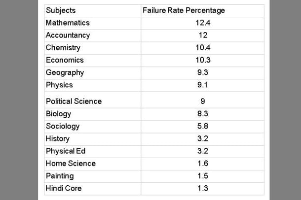 It is a known fact that the failure rates are the highest in the science stream subjects like mathematics, physics, chemistry, biology, accountancy and economics.