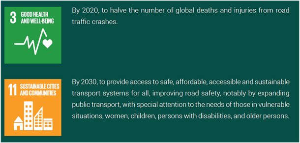The SDGs adopted in 2015 by the United Nations General Assembly has two specific targets related to road safety which is a major milestone for global road safety, confirming it is an essential element of the health and development agenda.