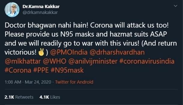 Dr Kakkar claimed that doctors were not being provided with protective equipment by the authorities.