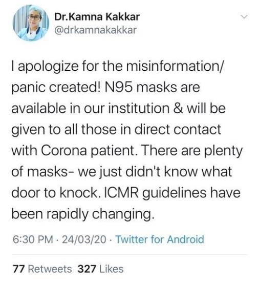Much damage was done by ever ready journalists before Dr Kakkar deleted her account and apologised for the misinformation and panic created.