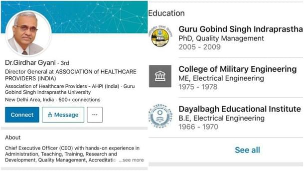 Dr Gyani is not a medical professional – he is an engineer and a PhD at that.