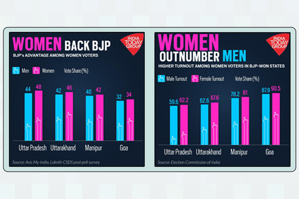 It appears that the various programmes for low-income groups, including Direct Benefit Transfers (bypassing middlemen), indoor toilets (women can protect their modesty and also save themselves from attacks), cooking gas cylinders (no more foraging for firewood, or smoke inhalation), and most of all, Jal Jeevan Mission for piped water (no more spending hours carrying water home) are tangible benefits for women. Not surprisingly, they voted for those who brought them these benefits. This may well have been the clinching factor in the BJP’s victories, most especially in UP, where Yogi Adityanath is seen as both uncorrupt and one who is not to be messed with.