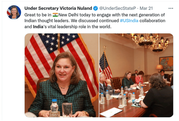 On the other hand, though, there was a visit to India by Victoria Nuland, who is called 'Ms Regime Change' in some circles for her role in the 2014 ‘Maidan Revolution’ in Ukraine that ultimately installed President Zelenskyy there. And we know what has happened to Ukraine.