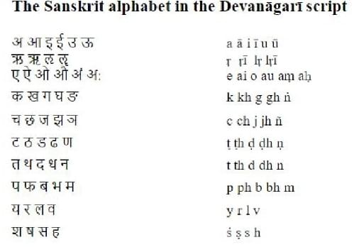 Note that the Sanskrit alphabet is represented traditionally in a two-dimensional arrangement based on how the sounds are produced. See below
