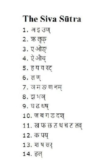 Pānini, the author of a famed grammar of Sanskrit who lived in the fifth century BC, in his Śiva Sūtras (also called Māheśvara Sūtras) came up with another classification in 14 categories based on phonological properties of sounds. See below: