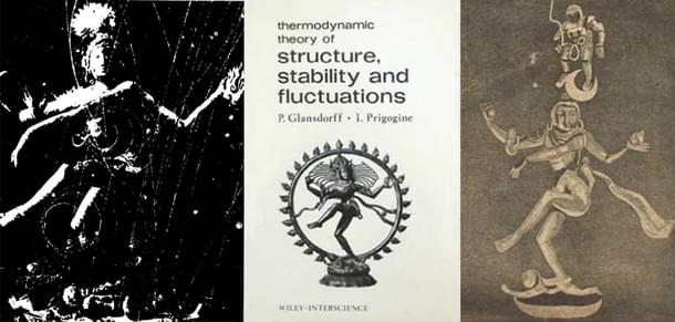 ...irreversibility generally has a dual aspect; it corresponds to dissipation (here the heat flow) and to the formation of order (the thermal diffusion). That is why I have put on the cover of one of my books a representation of a well-known Indian symbol, the dancing Shiva, who holds in one hand a fire which destroys, and in another a drum which creates!