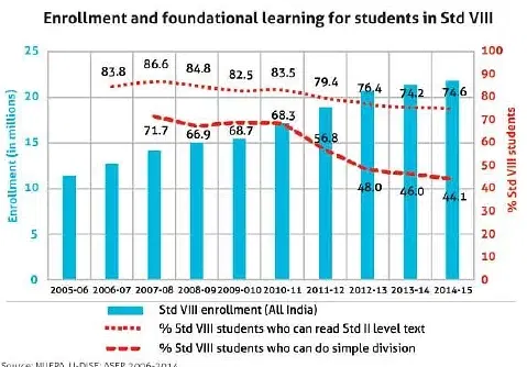 The only thing that changed in 2010 was that the RTE act came into being. It had instituted ’no detention policy’ which mandated that irrespective of the scores of students, they will be automatically upgraded to higher grade (until Class VIII) after completion of the academic year. It’s not that we were doing great before 2010, just that the poor performance turned to abysmal after the RTE act.